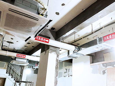 3、軟管接頭普通可采用帆布、人造革等材料,軟管長度不宜小于200,松緊度應(yīng)適宜,柔性軟管可緩沖廚房排煙風(fēng)機(jī)的振蕩。4、廚房排煙通風(fēng)管道裝置時(shí),進(jìn)、出風(fēng)日宜在風(fēng)道預(yù)制時(shí)開出洞口,如需在裝置終了的風(fēng)道上現(xiàn)開風(fēng)口,其接口處應(yīng)緊密。5、當(dāng)水平風(fēng)道高度在4m以上時(shí),裝置人員應(yīng)系安全帶。腳手架或移動(dòng)式支架上的跳板應(yīng)固定好,跳板寬度應(yīng)契合安全規(guī)范,在腳手架上的裝置人員宜攜東西袋,避免東西或電鉆等物掉落傷人。